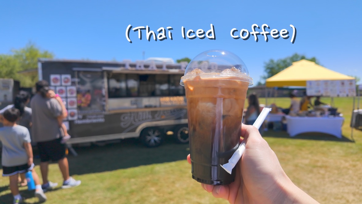 Before diving into the Filipino food, we grabbed an iced coffee from a Thai food stall to start the morning.