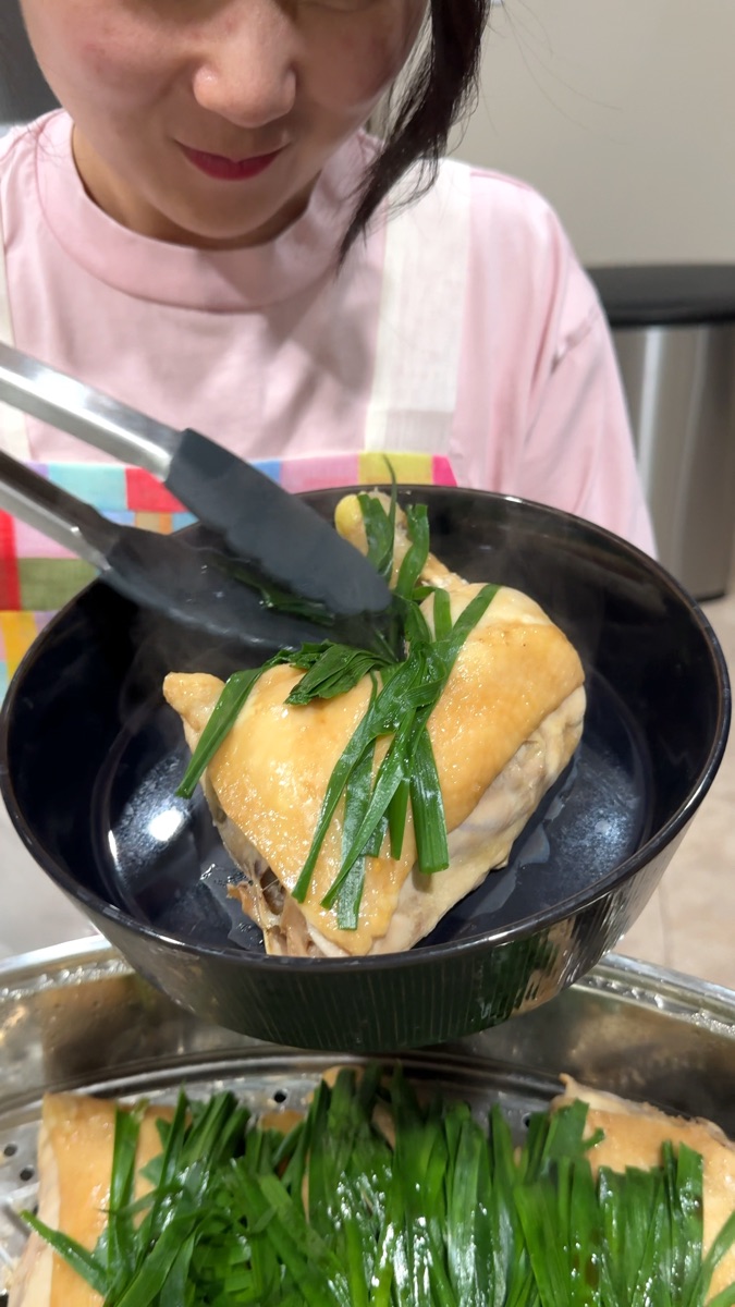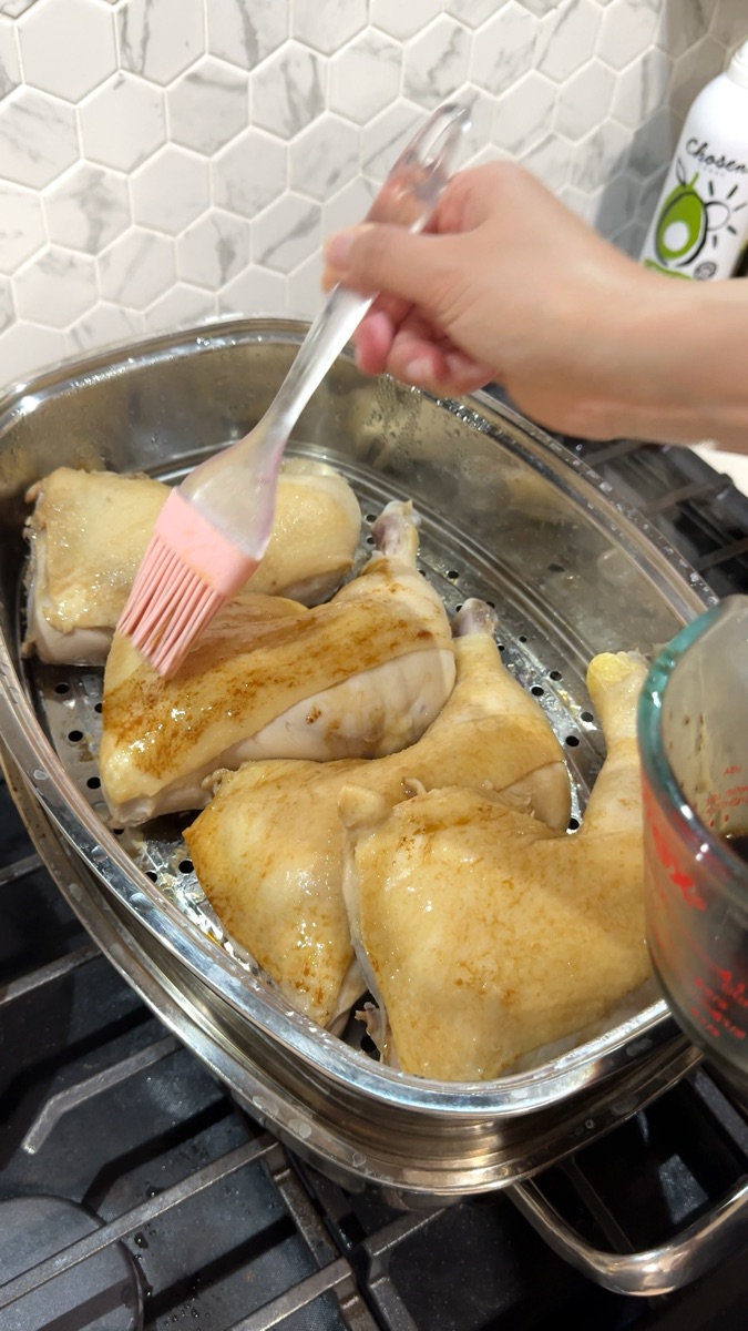I was genuinely shocked at how juicy this chicken turned out. After 45+ minutes of steaming, I expected it to dry out, but it was the opposite: the meat basically fell off the bone and had this incredible clean, pure flavor from the sesame-soy marinade.