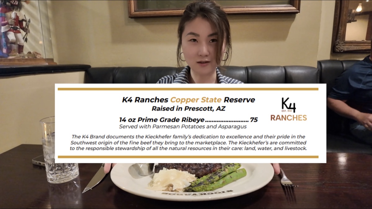 A local prime-cut steak sourced from K4 Ranch in Prescott, Arizona. There is something genuinely satisfying about eating a steak that was raised close to where you are sitting, and this one lived up to that. Perfectly seasoned, deeply juicy, with a beautiful char crust on the outside that gave way to a tender interior. Vincent was quiet for a while after the first few bites, which is always the sign of a great steak.