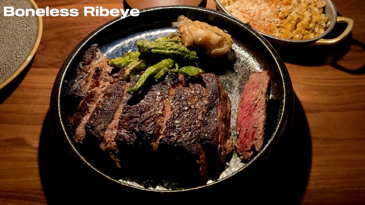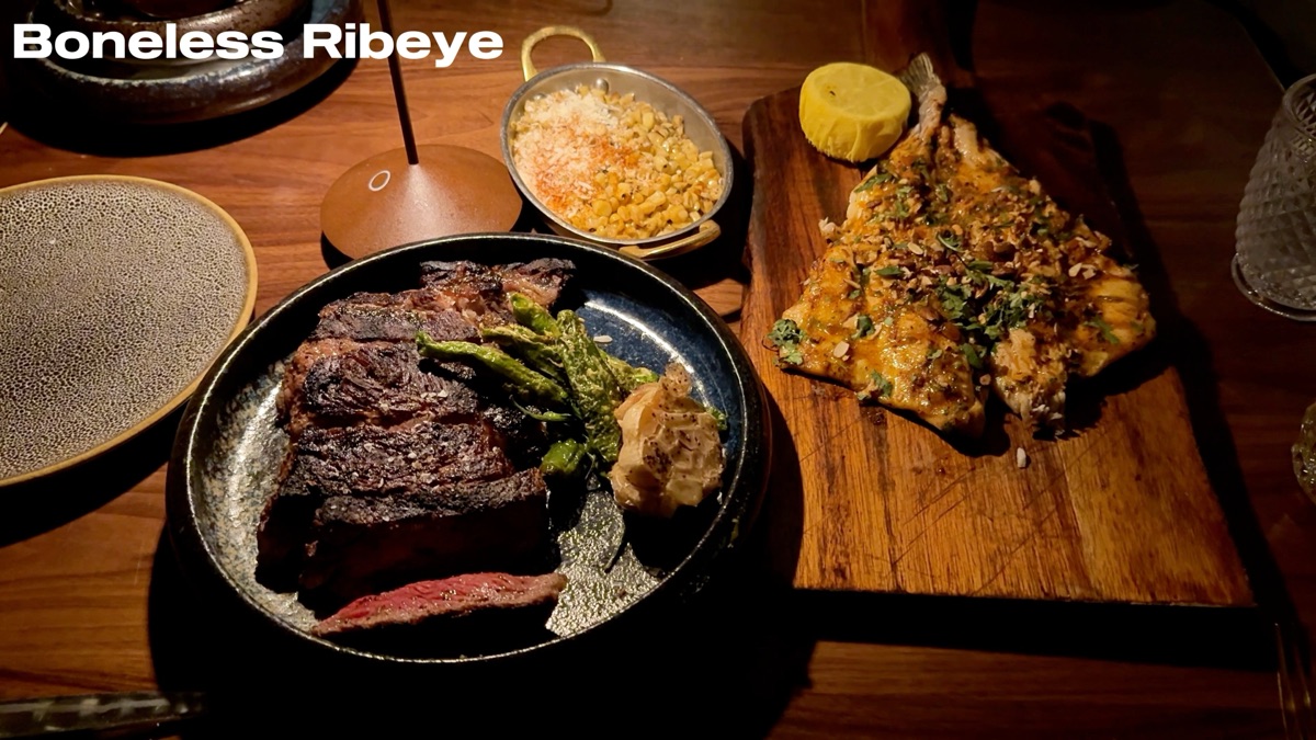 The branzino is fine. The fish is fully deboned with no head, which makes it easy to eat, and it has a light spice to it. But next to a $155 ribeye that delivers on every level, the branzino does not have much to compete with. It is not a bad dish, it just does not belong on your priority list here. Next visit we are skipping it and putting that money toward more steak.